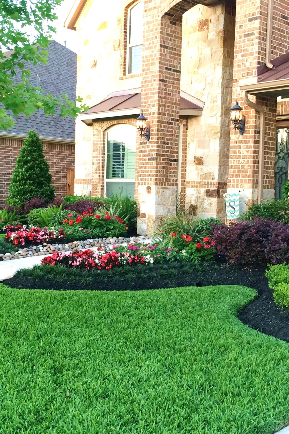Thoughtfully designed landscapes with plants, mulch, and clean layout finishes.